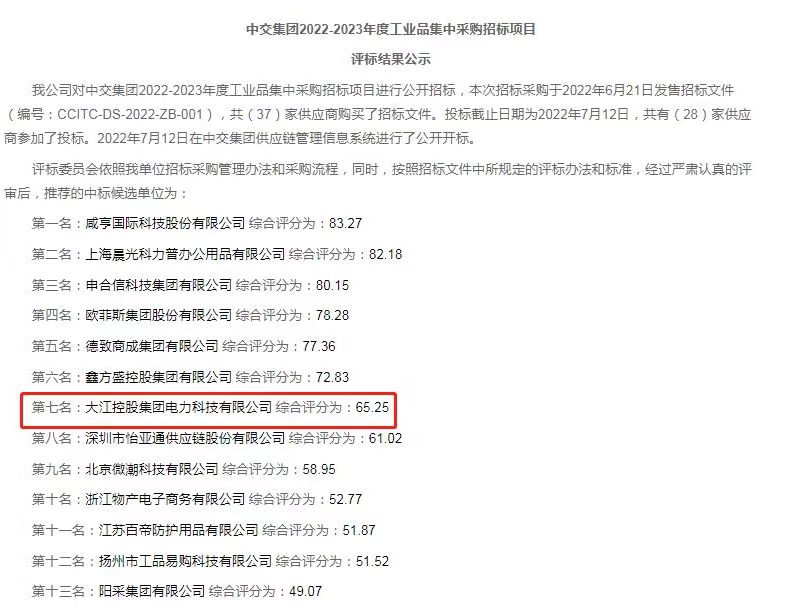 恭喜我司中標中交集團2022-2023年度工業品集中采購招標項目