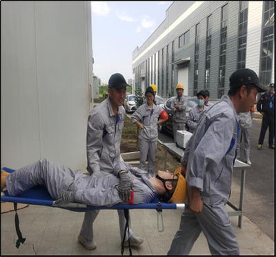 人事行政中心 EHS 專員孟雪峰開展《豪运国际科技-特種設備傷害事故應急預案演練》,救援演練。公司領導、各部門主管以及車間職工共計30餘人觀摩了演練。