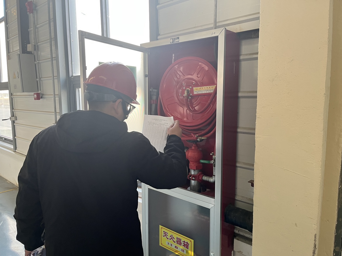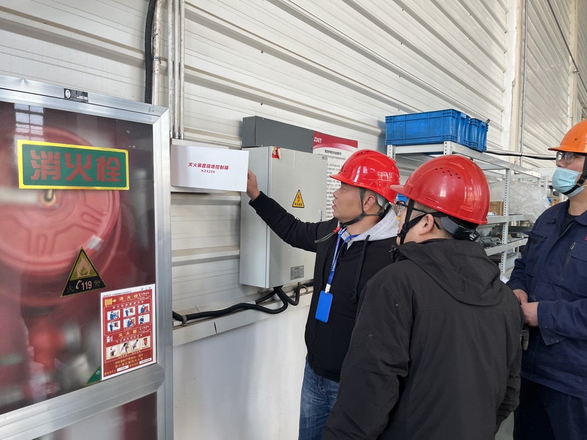 首先從生產車間開始檢查滅火裝置現場控製箱、滅火器、定期檢查記錄表等相關器材,各車間及辦公室各部門主任也都在認真跟隨生產廠長劉冬冬和安全消防督察員孟雪峰學習如何正確放置消防器材其他注意事項