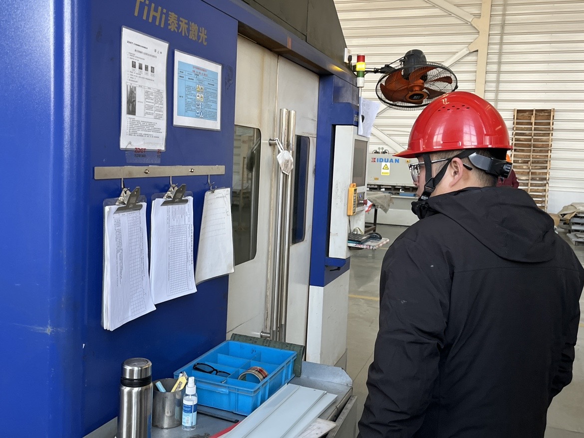 經過四十分鍾的仔細檢查後,檢查出一些漏洞,安全消防督察員孟雪峰向車間主管指出漏洞並詢查原因,拍照記錄並與之溝通後要求整改。各部門
