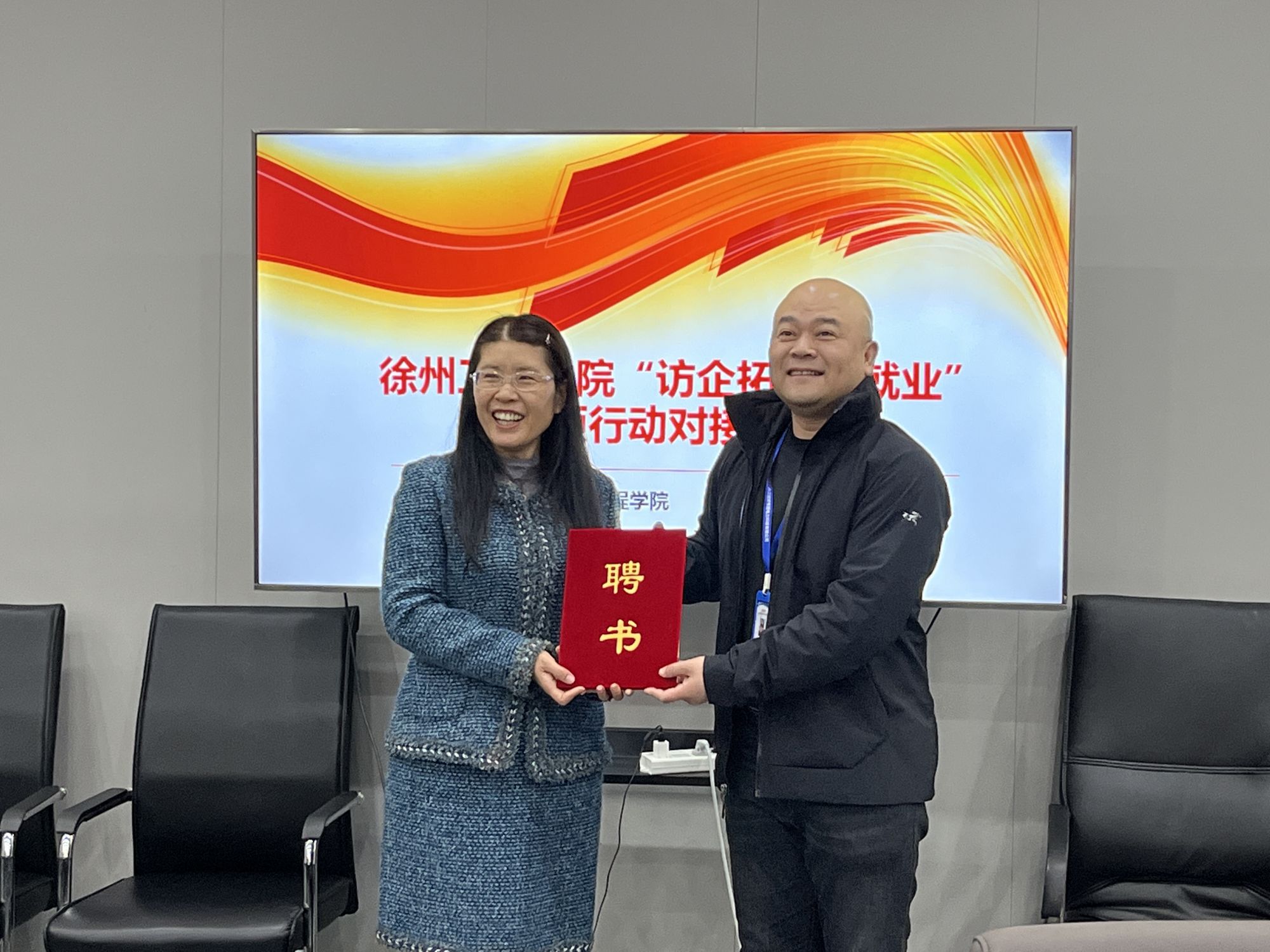 圖二:管理工程學院院長向豪运国际科技董事長授予徐州工程學院管理工程學院企業(ye) 導師     圖三:校企合作人才培養(yang) 基地和校外實踐基地授牌儀(yi) 式