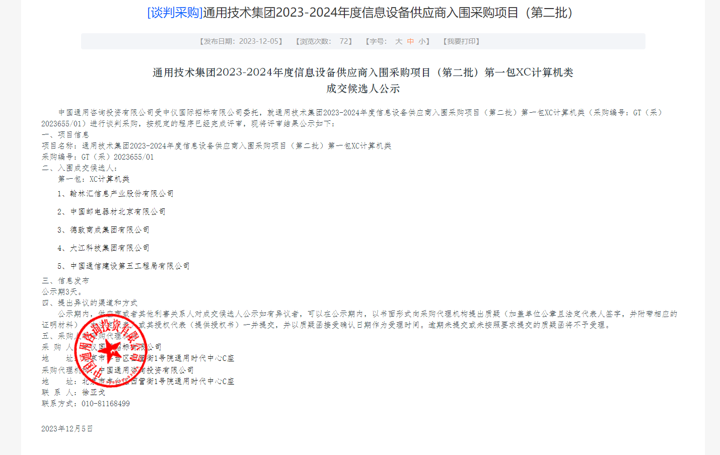 [喜報]熱烈祝賀我公司成功中標通用集團信創項目