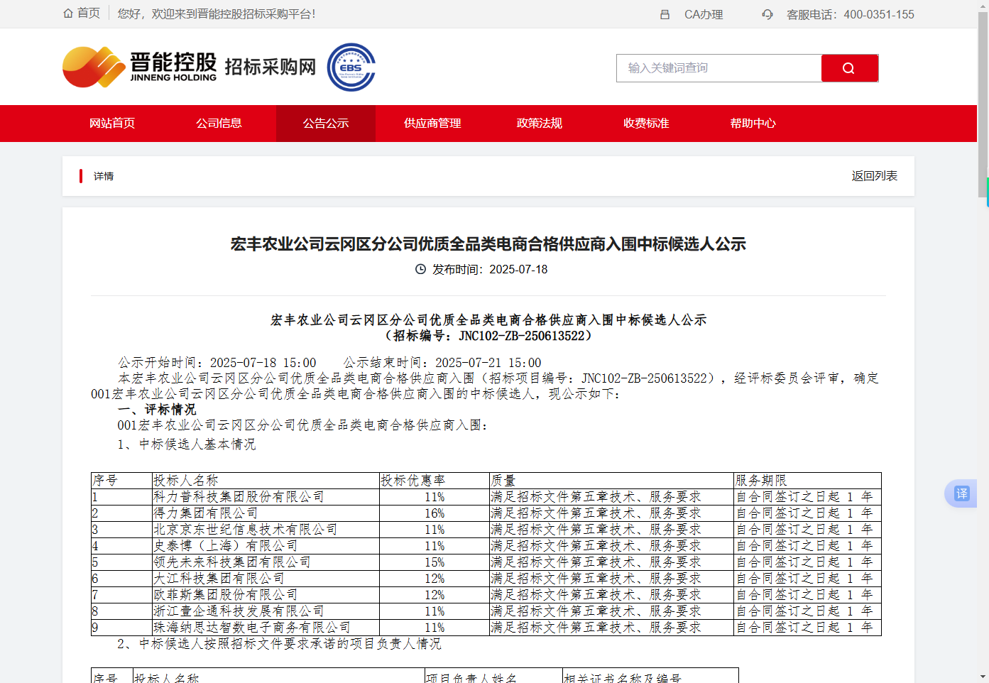【喜報】恭喜我司入圍宏豐農業公司雲岡區分公司優質全品類電商項目中標候選人