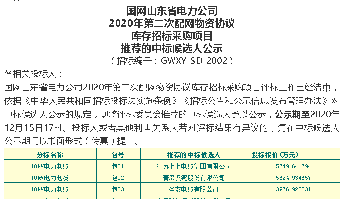 恭喜我司中標國網山東2020第二次配網物資協議庫存